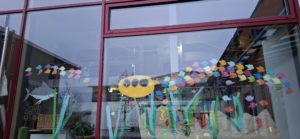 Mit Eifer wurde von der Bastelgruppe das Schulhaus als Unterwasserwelt gestaltet.